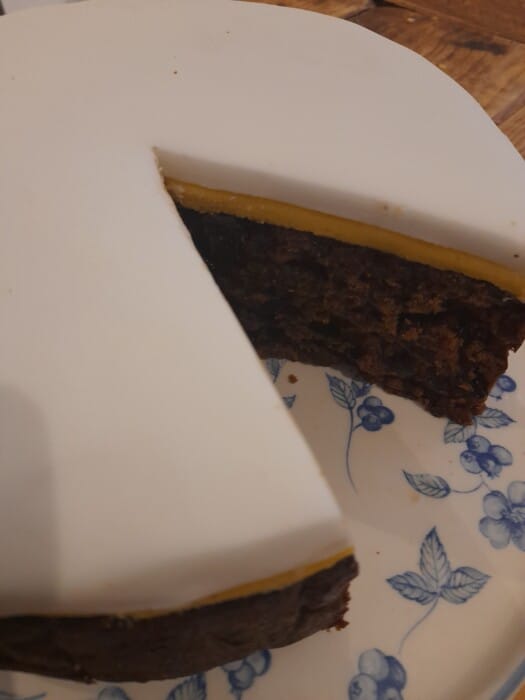 Check after two hours, and if the cake is a perfect colour, cover with foil. A skewer inserted into the centre of the cake should come out clean. Leave the cake to cool in the tin. Once cool feed with the remaining brandy.